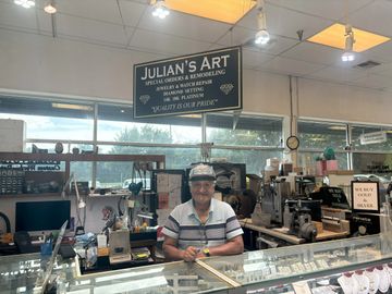 Julian Colque, originally from Peru and now a U.S. citizen, specializes in custom orders, on-the-spot repairs with professionalism, and stone setting for various gems. He also buys all precious metals and diamonds.